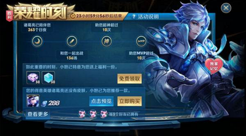 使用蓝色熟练度英雄胜利一场就能弹出荣耀时刻界面,这个小编之前说到过了,但有一点玩家要注意一下,跳出来的时候有个选项是“查看更多”,不点这个奖励就无法奖励,之后退出也点不到等于是白白损失一个福利。(每天仅开启一次,一个蓝色熟练度英雄仅一次机会)