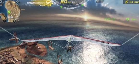 游戏一开始,你乘坐一架马上要爆炸的飞机。接着你准备用滑翔机降落到地面,在空中观察好自己要降落到哪一个城镇,观察好就可以进行降落了。