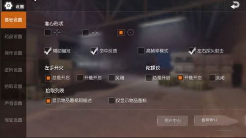 2,右边那里,有个陀螺仪设置,默认是开镜开启,所以我们开镜瞄准的时候就会启动,有轻微的移动,这是辅助我们射击的功能,习惯了就很好用!