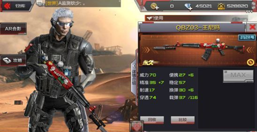 上图是2周年限定武器QBZ03-王尼玛游戏里面的持枪图。