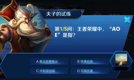 王者荣耀中AOE是指,王者荣耀夫子的试练答题答案。相信小伙伴们在玩游戏中会看到有很多便捷用语,有小伙伴看到了AOE这个词,王者荣耀中AOE是指,答案是什么,西西小编来为大家介绍。