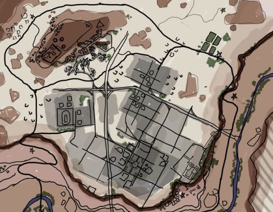 第二张地图尺寸为4公里x4公里,位于一个沙漠城市,曾经是风景优美的地方,但战争蹂躏了这个地方,黄沙掩埋了城市,南部和东部有峡谷,河流穿行而过,河水养活着在大城市被摧毁后苟延残喘的小村落,北部是贫民居住的地方。