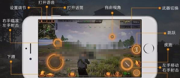 ● 当用右手瞄准的时候,可使用左侧屏幕的射击按钮进行射击