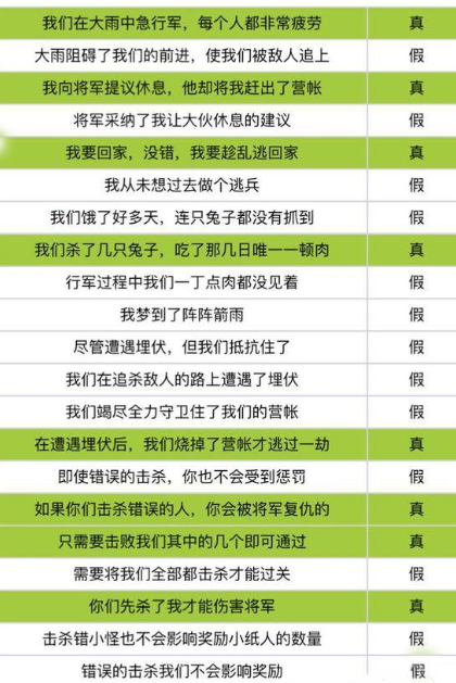 主要就是信息的真假,比如我今天见的最多的就是“我们抓到了兔子”,“我们保护住了营帐”,“就算你击杀错误将军也不会惩罚你的”,“击杀错误会受到将军的惩罚”。