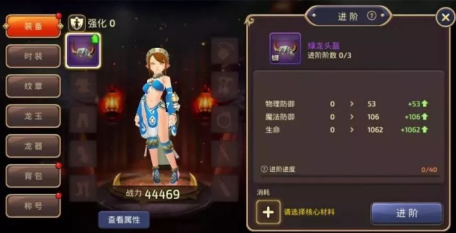 1.进阶的作用:进阶可以提升装备本身的基础属性,进阶提升进度条,当进度条满后,可以突破,第一次突破能够增加一条新的基础属性。