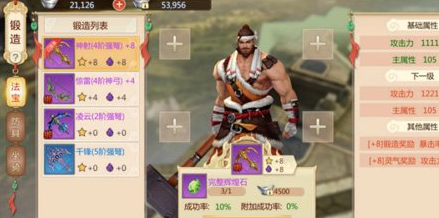 同样的,天工匣中的装备精炼也不是百分之百成功的,当锻造至0级2段后,锻造的成功率将会下降至80%,虽然没有幸运钛晶等道具来提高成功率,但是不要担心,经过小编亲测,失败率并不高哦~《蜀门手游》的锻造主要针对主、副法宝武器、装备以及坐骑,而锻造所需的素材也同样是辉煌宝石和光芒宝石。