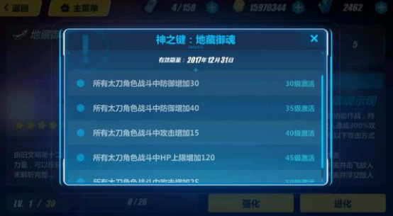 其中第一个,神之键武器等级很好理解,比如地藏御魂强化到50级时,即表明地藏御魂的神之键武器等级为50级。