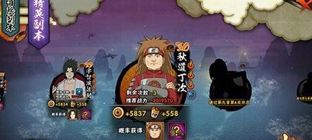关卡通关奖励:铜币+5837、经验+558、随机升级道具、该忍者碎片
