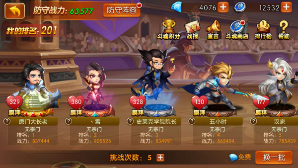 3)每天有10次免费参加斗魂场的机会,一次挑战后要等待2分钟才能免费进行下一次。如果等不及也可以用50钻石消除冷却时间,价格依次递增。