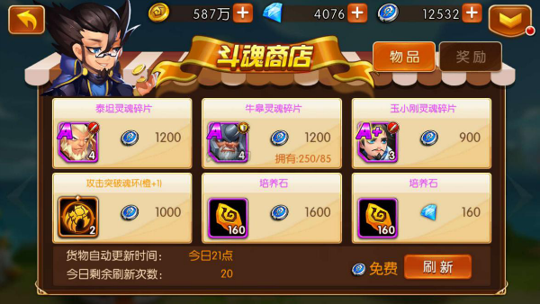 斗魂场每次获得胜利,系统会奖励竞技场币。只要拥有了足够的竞技场币后就可以在竞技场商店购买各种好东西。比如培养丹及英雄碎片等资源。