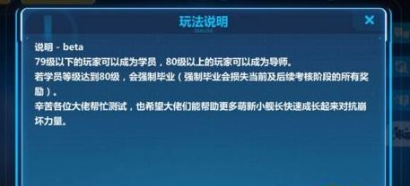 同时目前的导师系统要求61级以上的舰长可将60级以下的舰长收为学员。