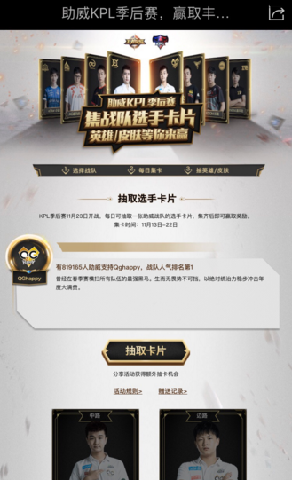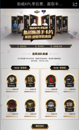 首页 → 安卓游戏资讯 → 安卓游戏攻略 → 王者荣耀KPL季后赛集卡赢奖励助威战队怎么选 助威战队选择推荐