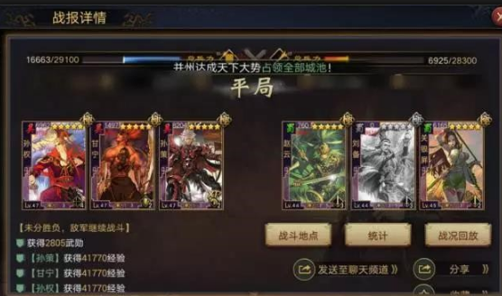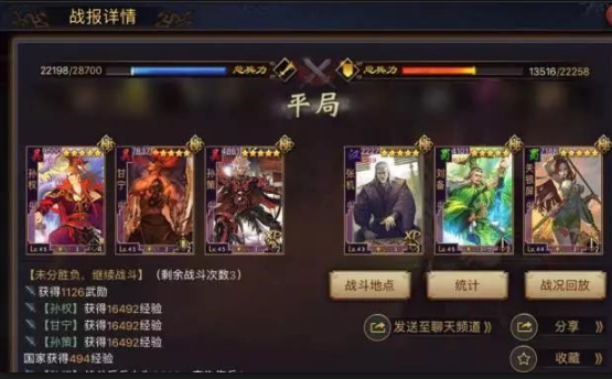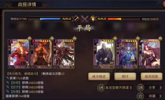 其次,利用甘宁自带战法,增加主动输出战法的发动机率,且有30%机率增加输出能力。但是甘宁的攻击距离也意味着【回马】、【健卒不殆】等战法对其有不小的威胁,而全攻击的加点和携带两个主动战法都导致甘宁作为中军,战损不会太低。