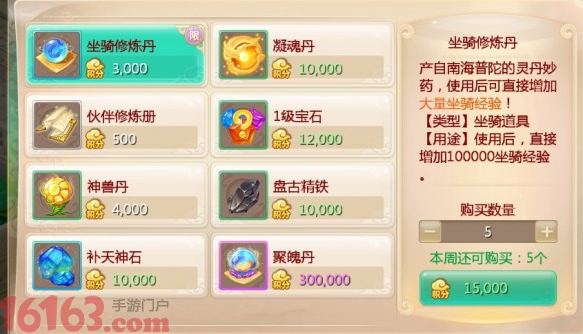 预计大闹天宫每周开放,时间待定,笔者低效率依然刷了26000分,兑换5个坐骑修炼丹需要15000分,已经满足。