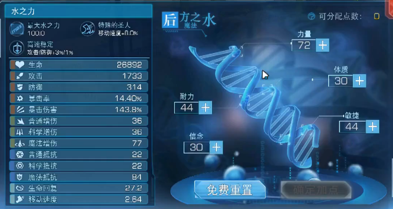 方案二:纯力量:力量这种加点就是持续稳定,而且因为水叔的攻击加成很高。所以前中期表现会优于信念,但是到了后期数据增大可能会不如信念带来的综合收益高。