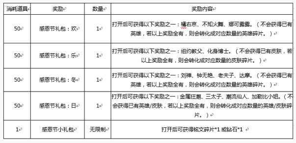 王者荣耀感恩节可兑换哪些英雄和皮肤