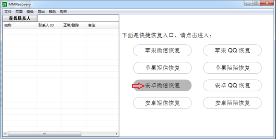 本文所使用的微信恢复工具是 MMRecovery。该工具是一个全面的手机通讯消息的恢复软件,可以实现对安卓和苹果手机微信、QQ、短信以及陌陌等删除聊天记录的快速恢复。