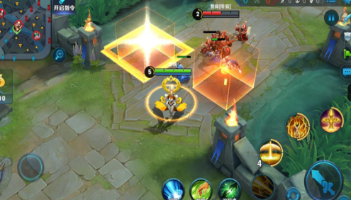 1技能:指令:放射,曦会朝指定方向施放能量,对路径上的敌人造成法术伤害,当撞到敌人之后,所施放的能量会慢慢停下,并且往周围展开一个十字型阵列,对碰到的敌人造成法术伤害。
