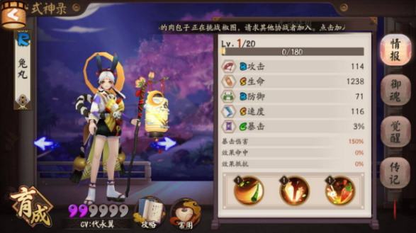 觉醒后的兔丸生命和速度达到了S,很适合作为辅助的属性。