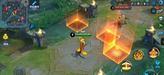 曦向指定方向释放能量,对路径上的敌人造成法术伤害和击退效果,在撞到敌人之后逐渐停下,并展开十字型阵列,对命中的敌人造成法术伤害