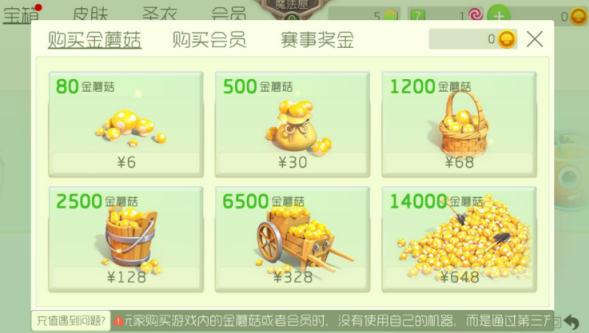 充值648元:14000金蘑菇,平均1元购买21.60个金蘑菇