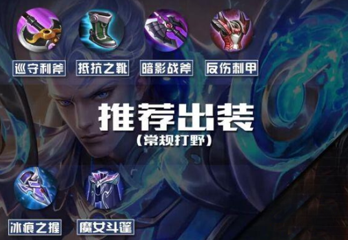前期巡守利斧+抵抗之靴。前期选择打野刀去打野,然后升级巡守利斧能够让铠通过打野强化自身的血量,并且后期升级巨人之握也能强化铠的生存性。而抵抗之靴能够提升法术防御和移动速度,韧性的提升能够降低自身被控制的时间。