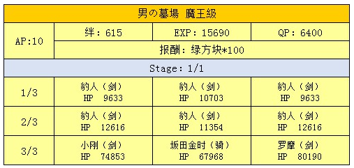 以上就是FGO万圣节二期男人的墓地副本配置以及女性限定从者一览了,这个副本只能使用女性从者,大家使用克制职阶的女性从者挑战就行了。
