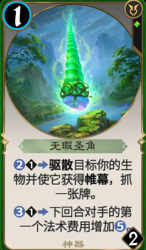 (调整后,无暇圣角将不能用于驱散对手的生物。克制法术费用的效果也只生效1次)