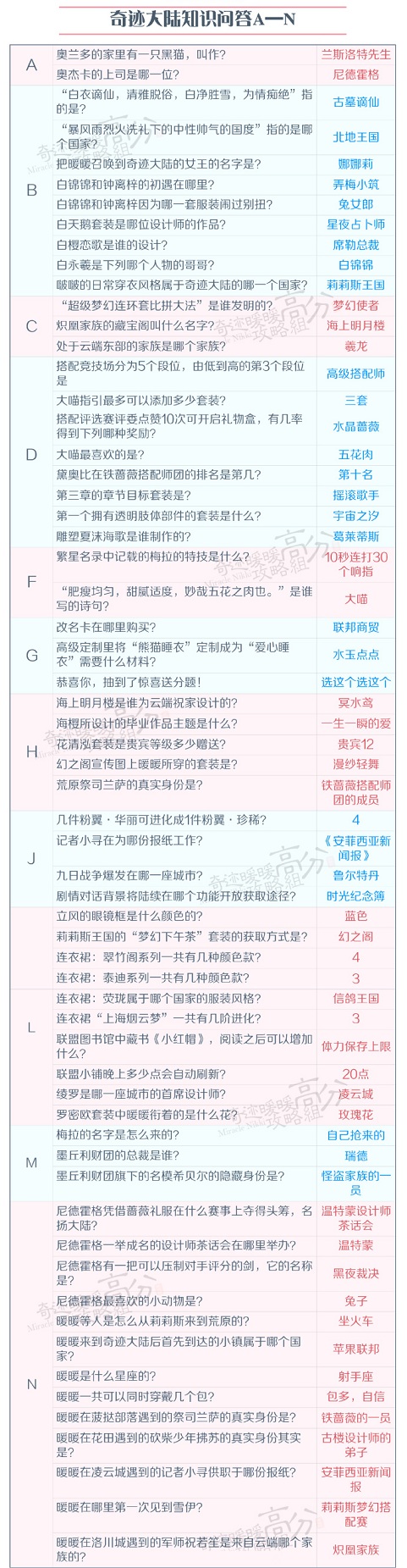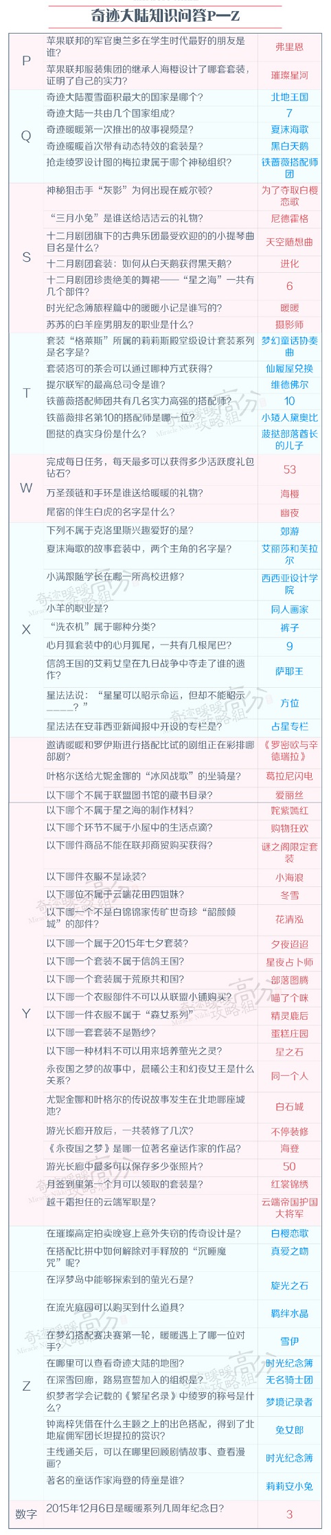 奇迹暖暖这次的奇迹大陆知识问答题目不少,小伙伴们不知道题目的答案,小编整理了一组奇迹暖暖奇迹大陆知识问答问题答案,奇迹大陆知识问答大全2017,需要的可以看看!