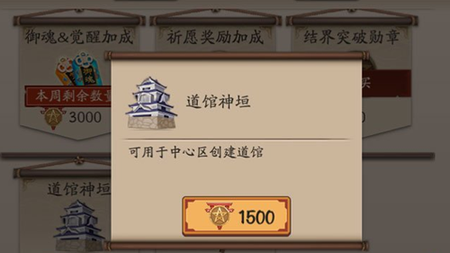 ※会长或副会长可以消耗寮勋章购买“道馆神垣”创建道馆,注意20:30~23:00为道馆突破开启时间,该段时间内无法创建道馆。