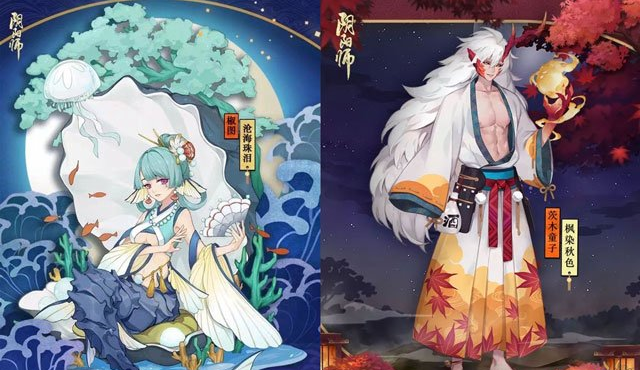 4.茨木童子皮肤·「枫染秋色」和椒图皮肤·「沧海珠泪」上架皮肤商店,各位喜欢的阴阳师大人可以前往购买;