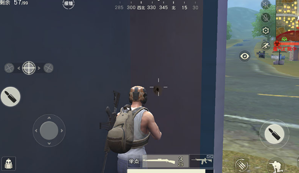 看我人在的这个房子上,占领了这个交通要道的房子,可以打左右的两边,没看到敌人,可以选择趴下,也是不会被看到的,可以用小眼睛卡视角进行防守,身边有没有人。