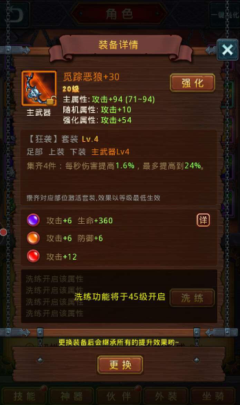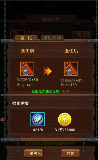 装备强化:装备可以通过材料强化,提升属性,材料平常刷副本就可以得到。