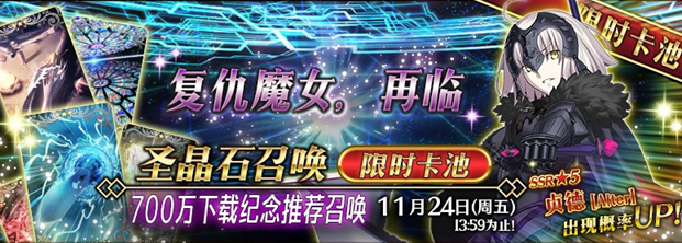 为纪念突破700万下载,「★5(SSR)贞德〔Alter〕」限时登场!