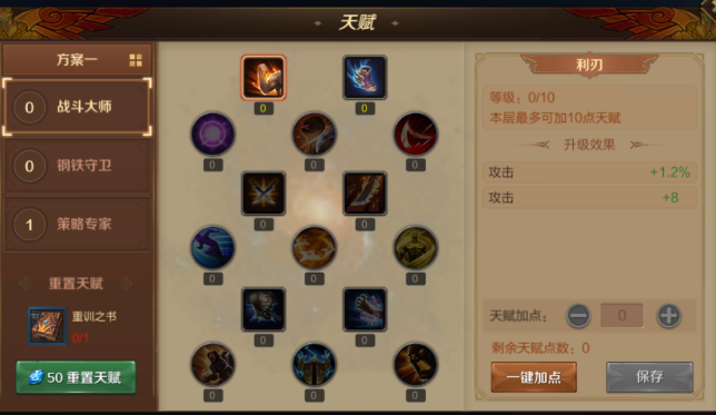 燃烧之门手游中玩家达到10级后将会开启天赋系统,从技能菜单进入,根据自己的职业需求来进行天赋加点,燃烧之门手游各职业天赋怎么加,下面是燃烧之门天赋加点攻略,希望大家喜欢。