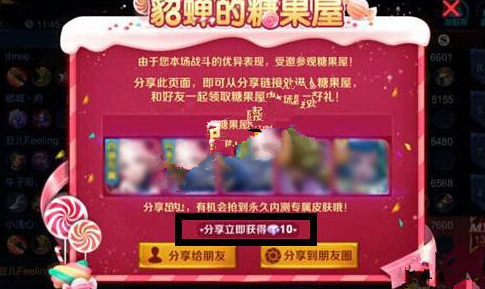 暖暖冬日,貂蝉的糖果屋重新开启,大家在对局胜利后有几率弹出貂蝉的糖果屋,分享链接即可与好友一起抢夺里面的奖励哦!