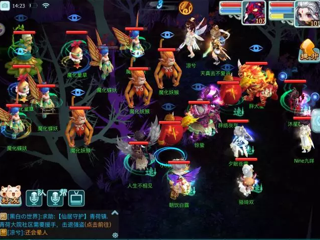 其次建议封印右边区域的魔化蝶妖,物理群攻加上会吸血,如果队伍内不配备有罗汉阵法群,建议控制住蝶妖。