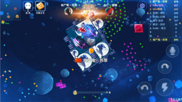 你估计就在游戏里面数一数二的大头了,可以开始尝试攻击排名较前的玩家,给个小技巧就是,想办法把他身边的方块慢慢打碎,然后吸取变大进行反杀,但是这种事情最好保留你的加速技能好逃跑也可以给敌人来一次致命一击。