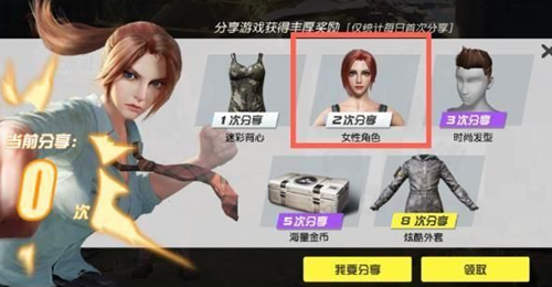 分享了两次之后就会获得女性角色,如何要自己点击领取。