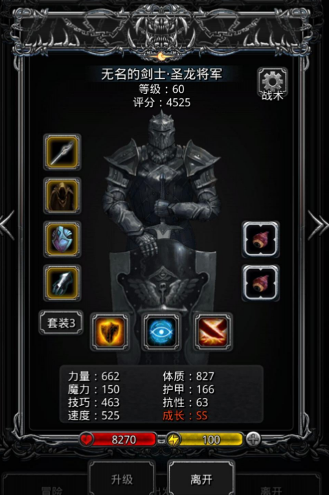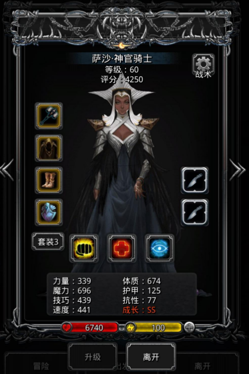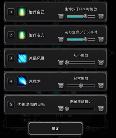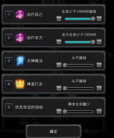 我的出战阵容是神官骑士,圣龙将军,教宗,霜寒法师,这里教宗用圣光也可以,加血技能是一样的,法师最好霜寒,其他法师不稳。