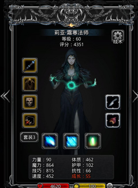 武器是用牧师符文做的圣徒手锤,衣服是图15据点出的一个加100技巧的火衣,饰品是斯科尔和双技巧的龙虾护手。斯科尔有很高的技巧和血量,完美。饰品一个带先发,另外一个选择技巧高的战利品。