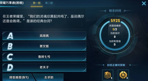 王者荣耀荣耀万事通是王者知道答题的一个类,这一类的题目问题都是跟王者荣耀游戏相关的,不少问题都比较难,我们的灵魂总算起共鸣了虽说偶尔还是会跑调,是谁的经典台词,西西小编来为大家介绍答案。