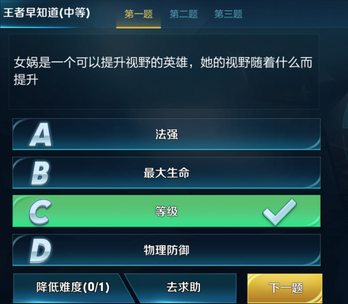 王者荣耀第二期王者知道活动开启,其中荣耀万事通里面有一个问题,女娲是一个可以提升视野的英雄她的视野随着什么而提升?一起来看看王者知道答案吧!
