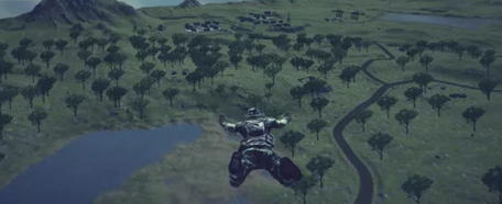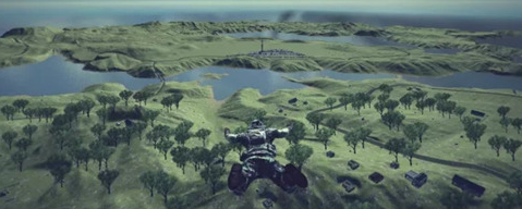 也许已经有人发现这张图透露的信息了,我们可以看到远处有一片建筑密集的地方,这里可能是一个城市。再将图片放大些看,还能看出有像金字塔一样的层叠结构,莫非这地图中还有名胜古迹?