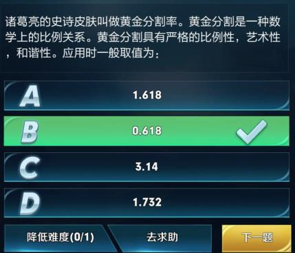 王者荣耀黄金分割率应用时一般取值为 王者知道第二期答案