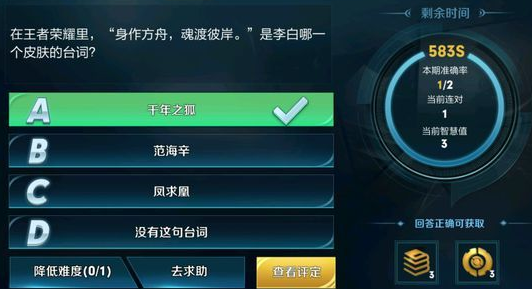王者知道——荣耀万事通(困难)——在王者荣耀里,“身作方舟,魂渡彼岸。”是李白哪一个皮肤的台词?