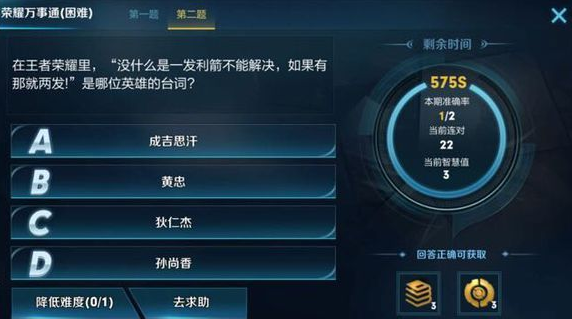 王者知道——荣耀万事通(困难)——在王者荣耀里,“没什么是一发利箭不能解决,如果有那就两发!”是哪位英雄的台词?