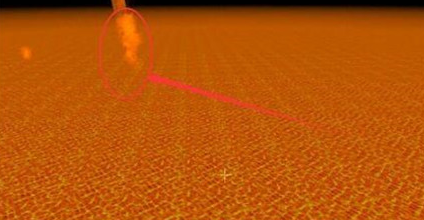 需要准备的材料:石块、蓝钻铲、细沙块,首先要知道哪里有硫磺晶砂,在地心世界的岩浆中,如果有下图这样喷射火焰的位置,
