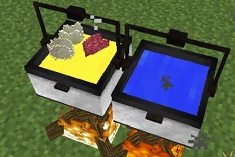 我的世界评测】首先要点一个篝火,找到一小片落叶,用燧石或者打火石右击就可以点火,向篝火投掷原版的生食(肉,鱼,土豆)会获得烤熟的食物。