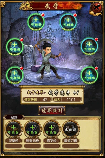而在主角进阶到五之后,我们在按照先防后攻的顺序为其他侠客进阶,再次之前我们同步要做的就是给每位侠客把下面的四本秘籍刷出来装备上,这四本秘籍中前三本都需要40个碎片来合成,并且都可以在6点体力的精英关卡中打出,而最后一本武功秘籍需要80个碎片,在10点体力的精英关卡中。先为防御侠客收集秘籍以提高防御能力,保证主角能够全力输出。这种打法可以最大限度的让体力物超所值。